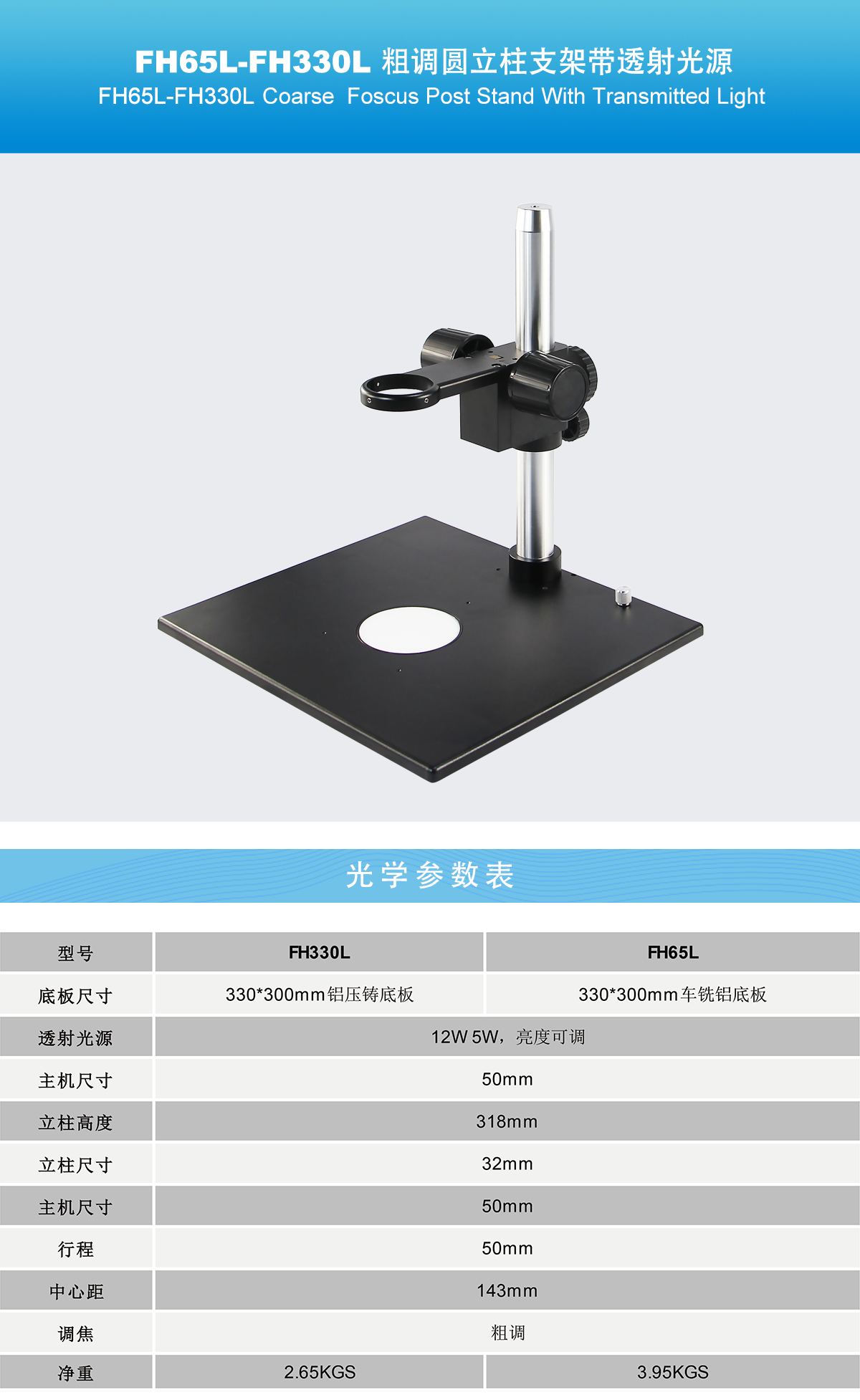FH65L/FH330L 粗调圆立柱支架带透射光源