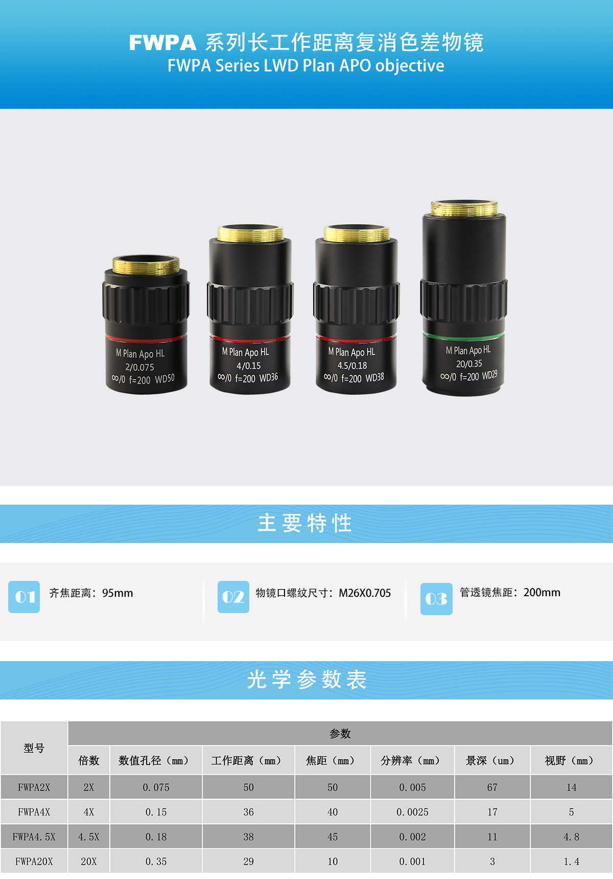 FWPA 系列长工作距离复消色差物镜