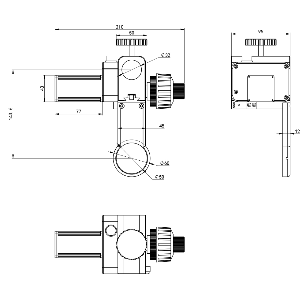 • 支持电动调焦和手动调焦两种方式,精度可达0.005mm,5个预置位,可搭配显微镜设置五个不同倍率的物镜,微调转一圈0.214mm/圈,电动调焦速度三档调节