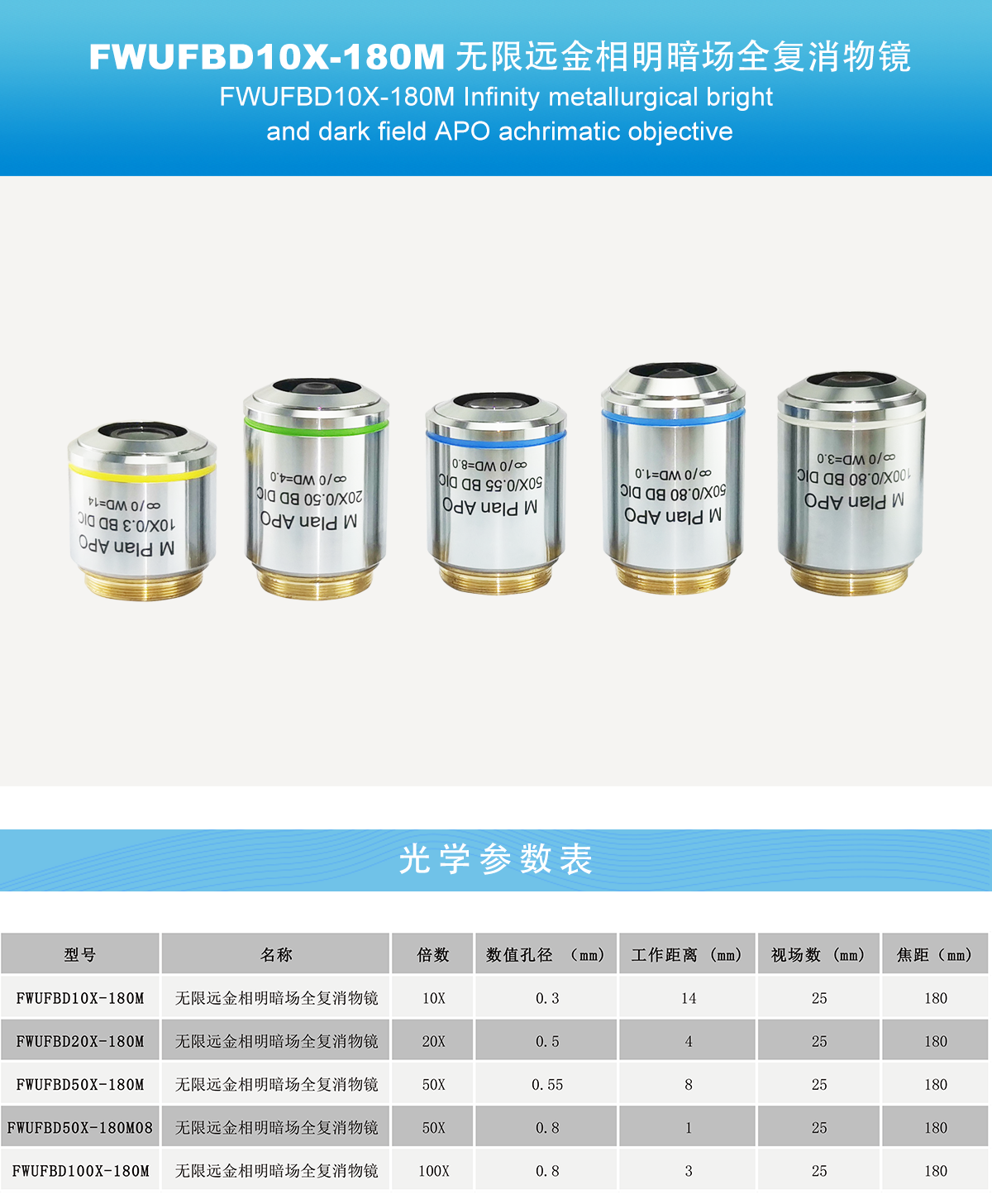 • FWUFBD10X-180M金相明暗场全复消物镜