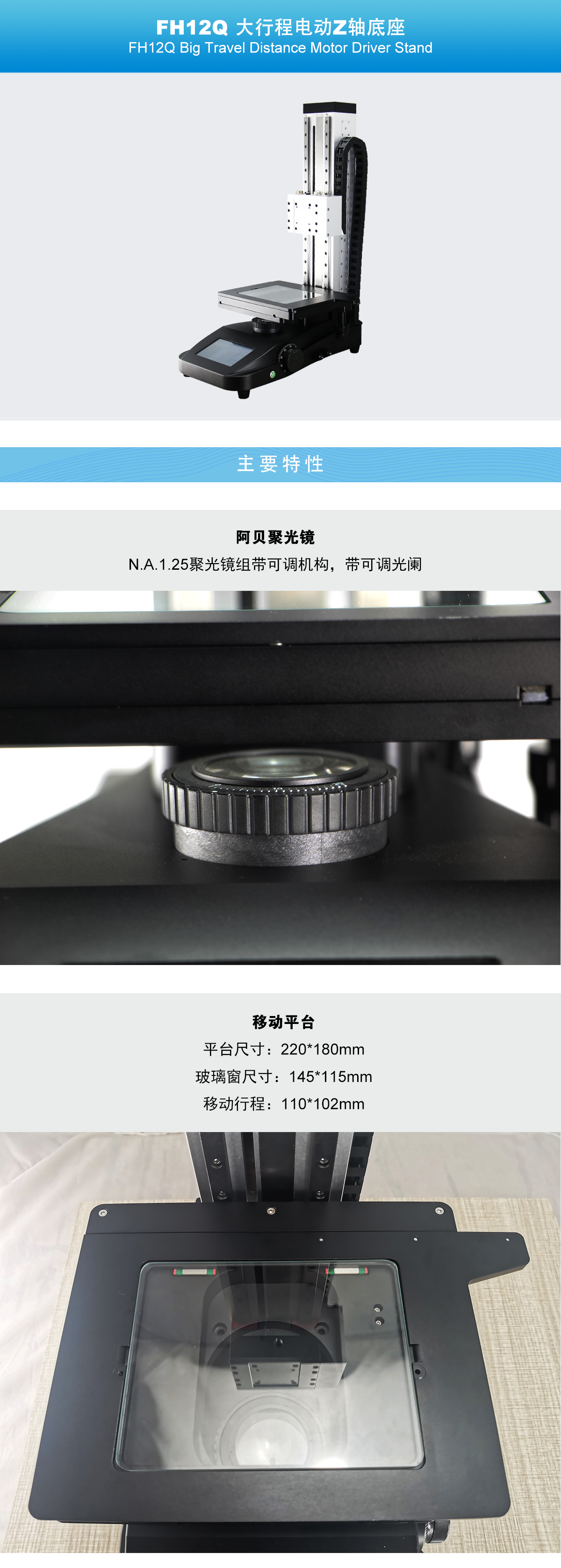 • FH12Q 大行程电动Z轴底座