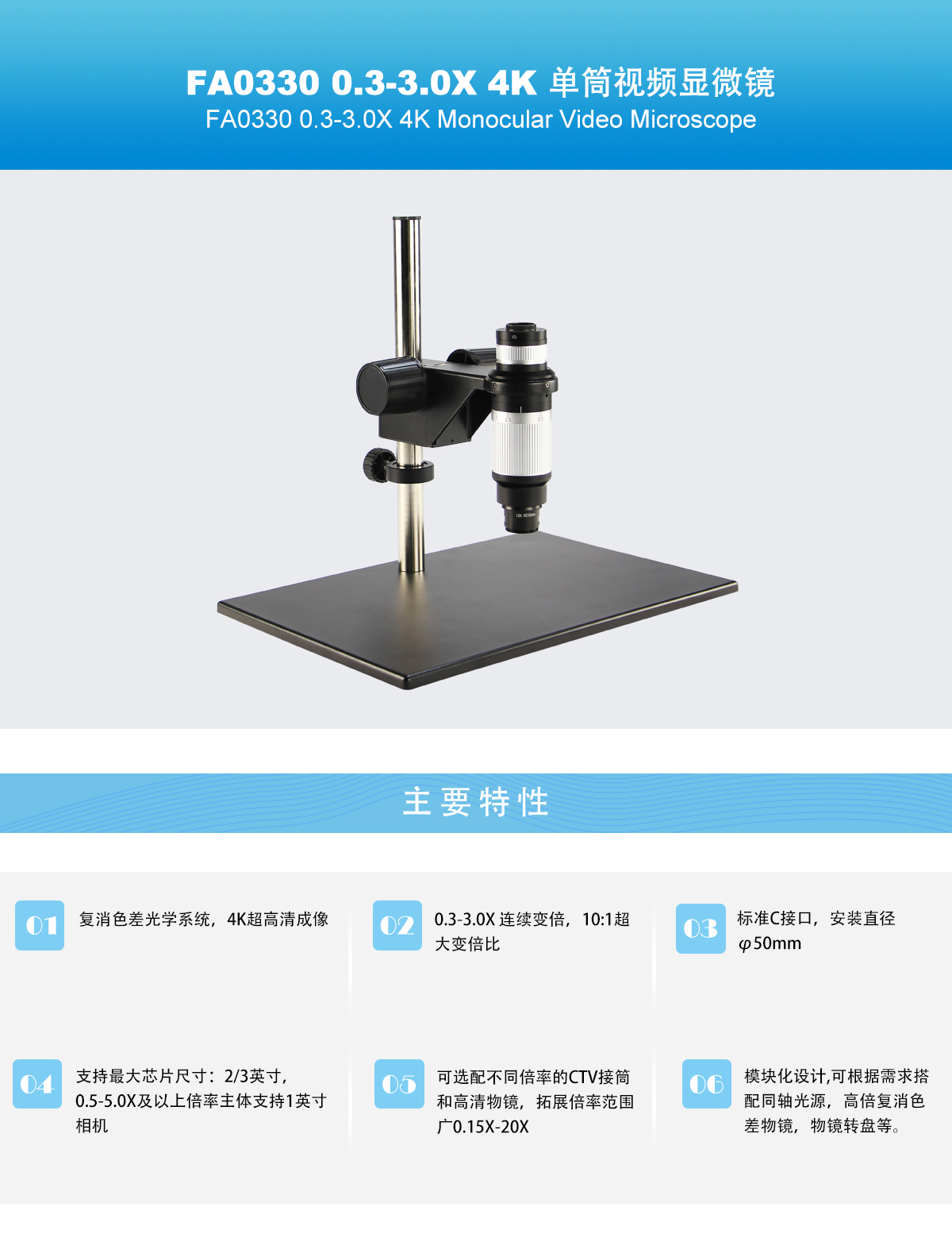 • FA0330 0.3-3.0X 4K 单筒视频显微镜