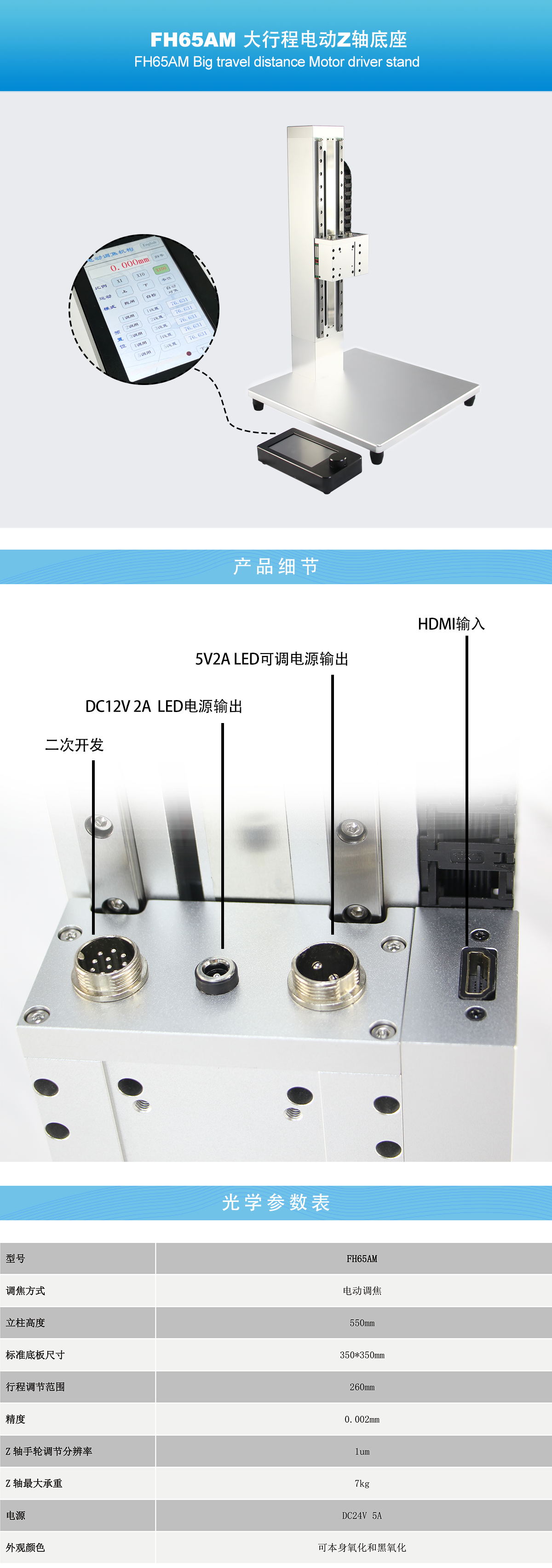 • FH65AM 大行程电动Z轴底座